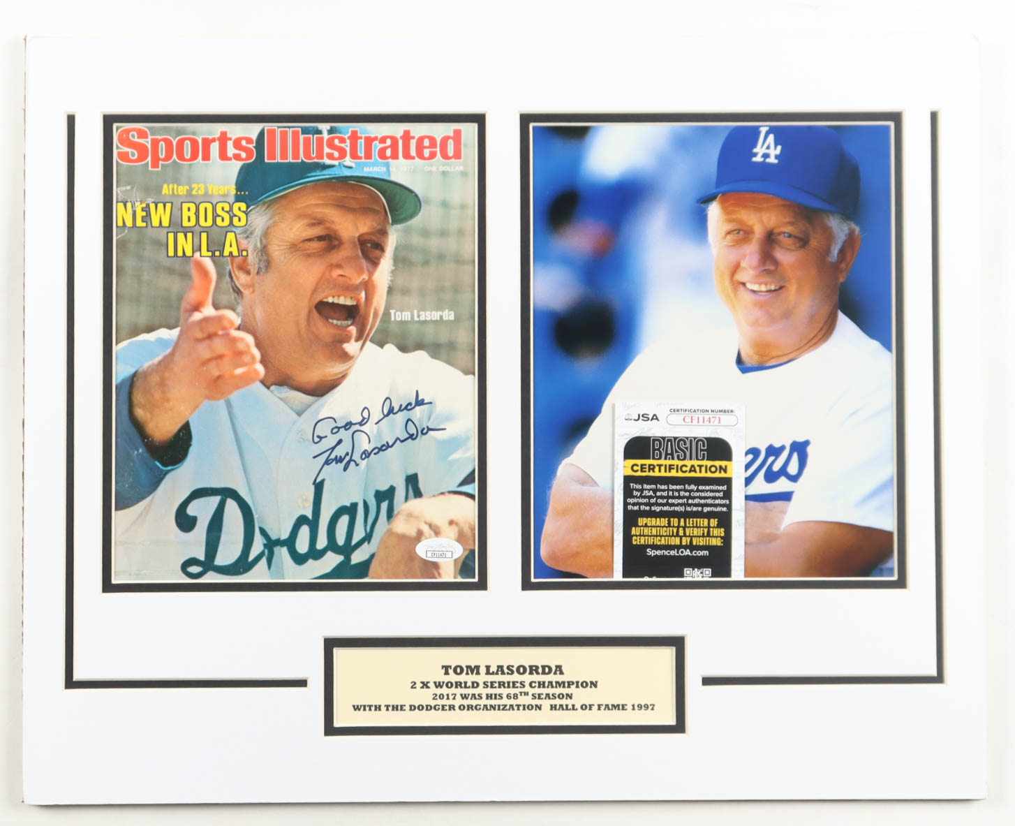 Tommy Lasorda Signed Dodgers Custom Matted Magazine Cut Display Inscribed "Good Luck" (JSA)