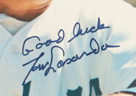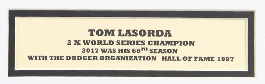 Matting measures 16" x 20" in size. Features a cut that has been hand-signed and inscribed by Tommy Lasorda (D. 2021, Brooklyn Dodgers, HOF).