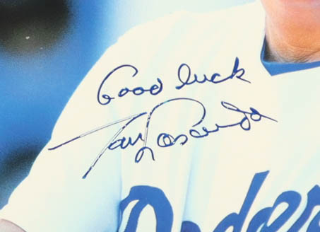 Matting measures 16" x 20" in size. Features a photo that has been hand-signed and inscribed by Tommy Lasorda (D. 2021, Brooklyn Dodgers, HOF).