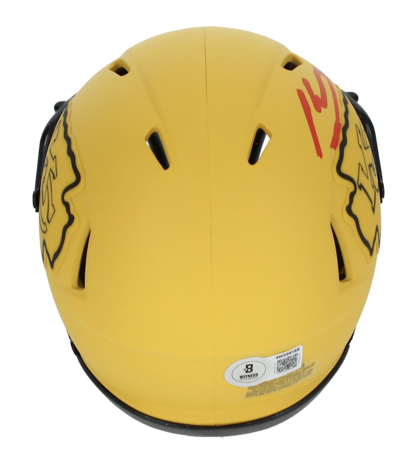 Riddell Kansas City Chiefs rave alternate speed mini helmet has been hand-signed by Kenneth Walker III.