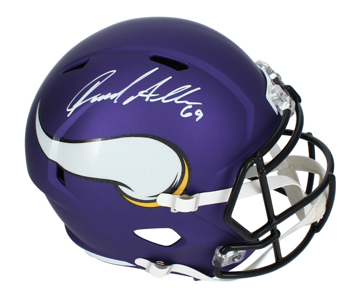 Riddell Minnesota Vikings full-size speed replica helmet has been hand-signed by Jared Allen (HOF).