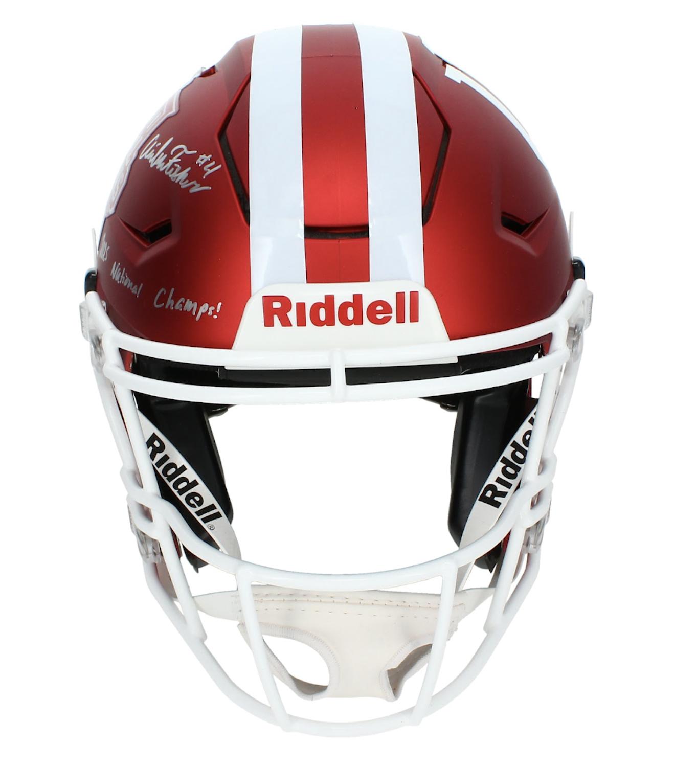 Riddell Indiana Hoosiers National Champions logo full-size authentic on-field speedflex helmet. Hand-signed and inscribed by Aidan Fisher.