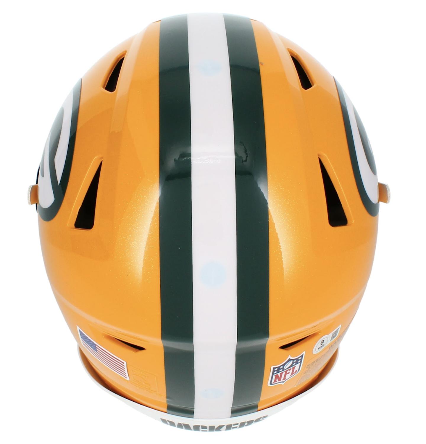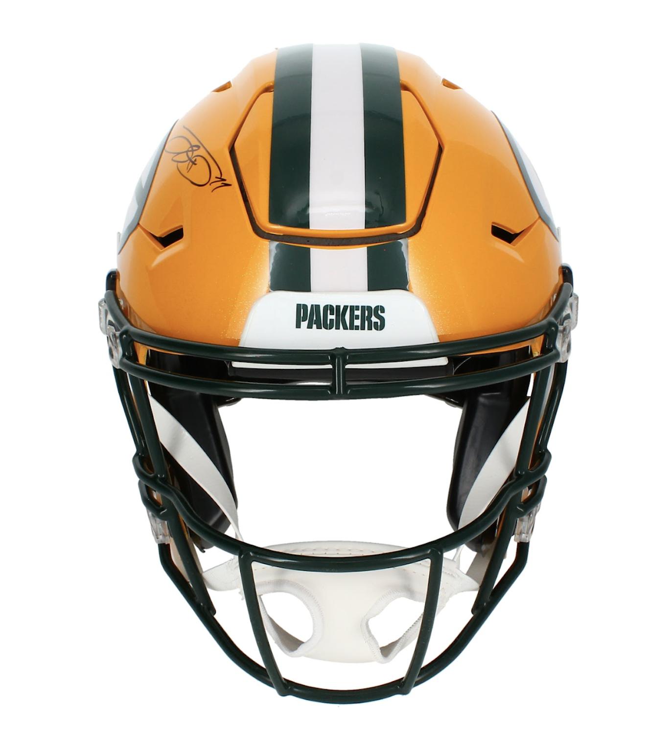 Riddell Green Bay Packers full-size authentic on-field speedflex helmet. Hand-signed by Jayden Reed.