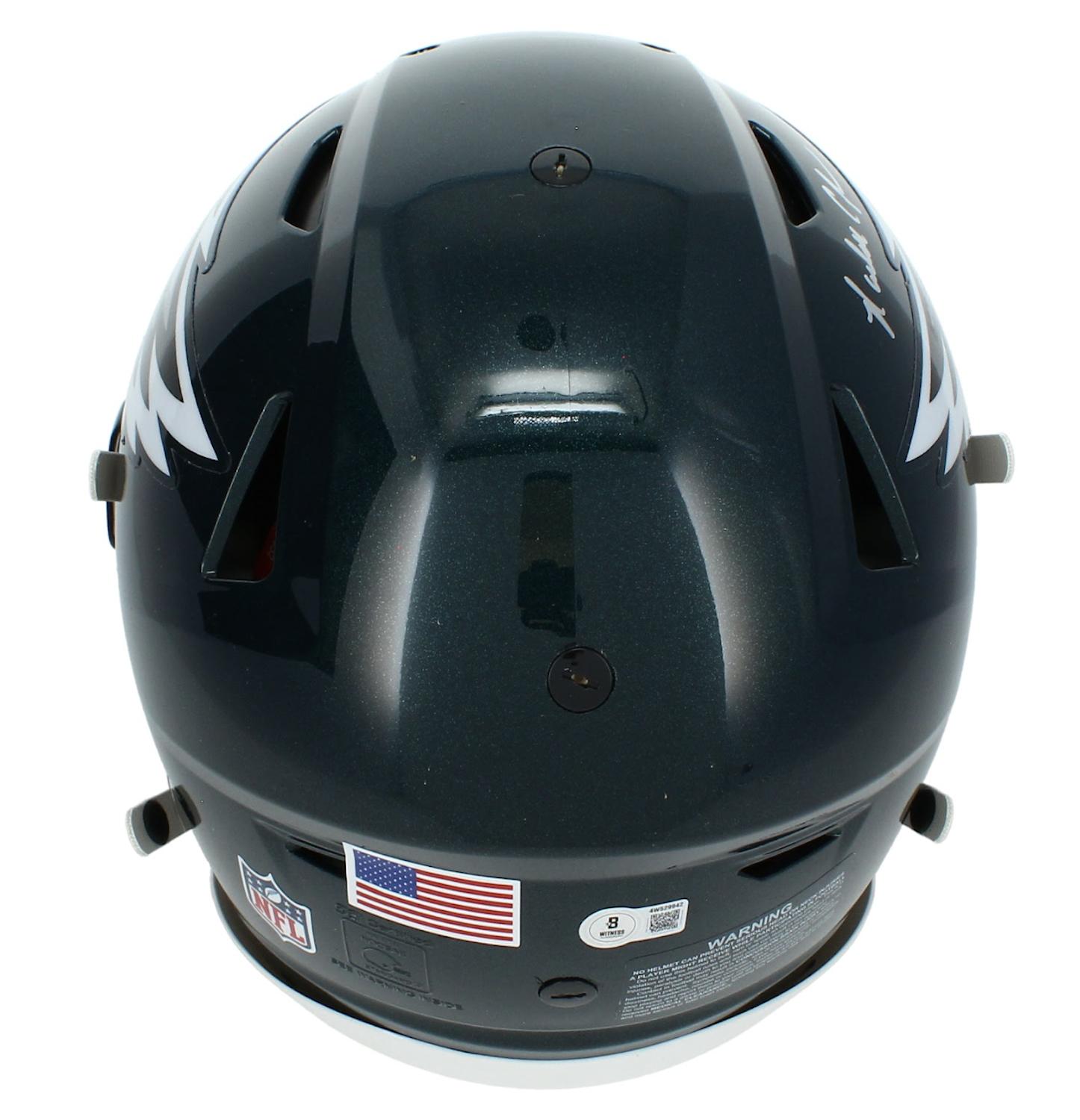Riddell Philadelphia Eagles full-size authentic on-field speedflex helmet. Hand-signed by Randall Cunningham.