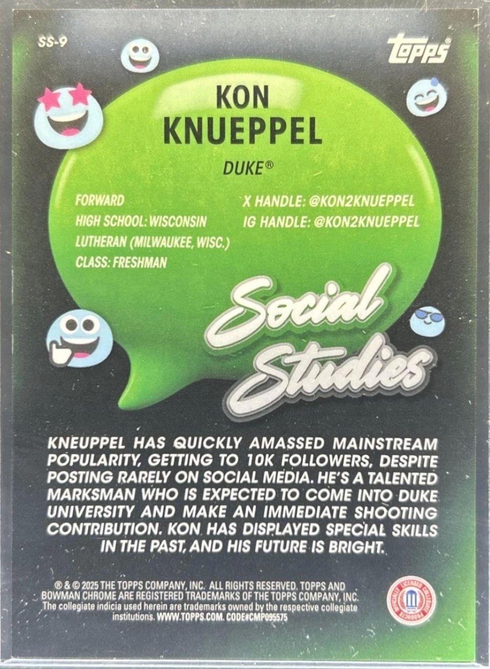 Kon Knueppel 2024-25 Bowman Chrome University Social Studies Orange Refractors #SS9 RC #/25