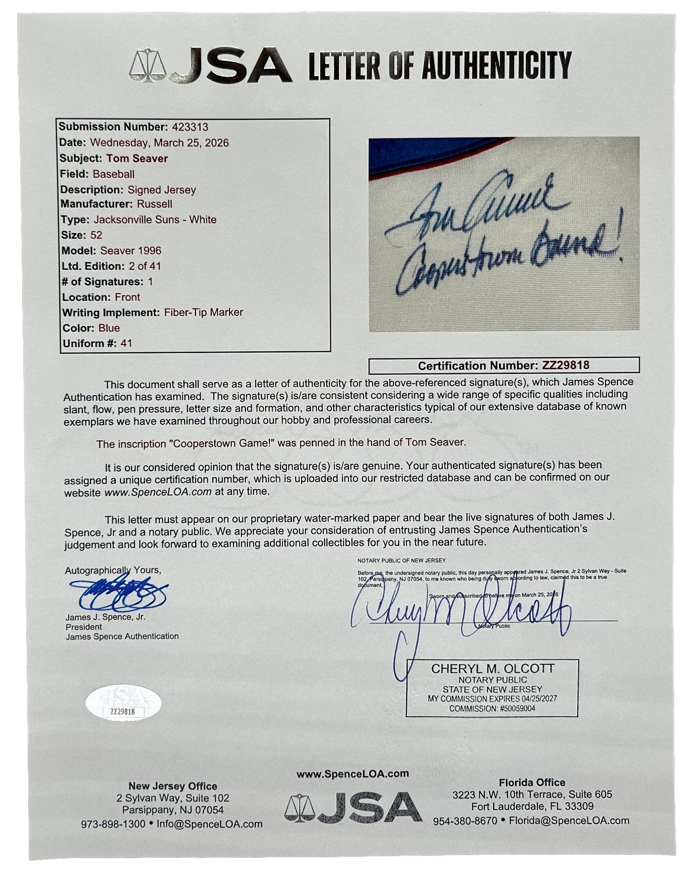 Tom Seaver Signed LE Jacksonville Suns Russell Athletic Jersey Inscribed "Cooperstown Bound" (JSA)