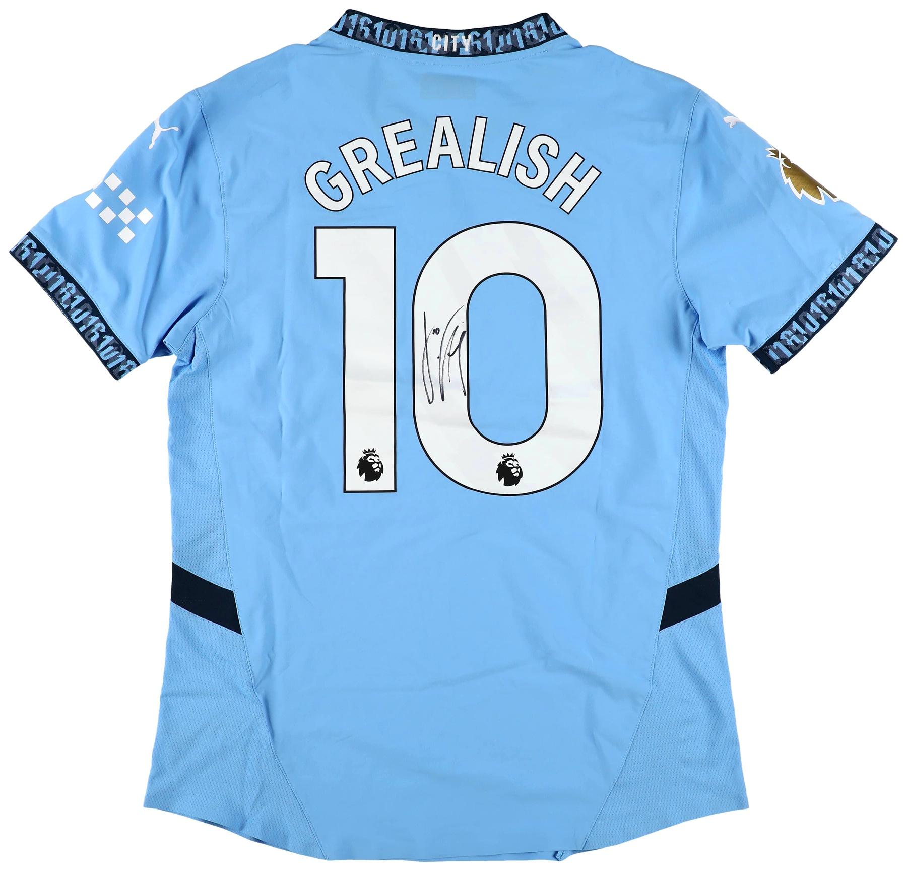 Puma authentic jersey. Everything is sewn/pressed on, size M. Hand-signed by Jack Grealish.
