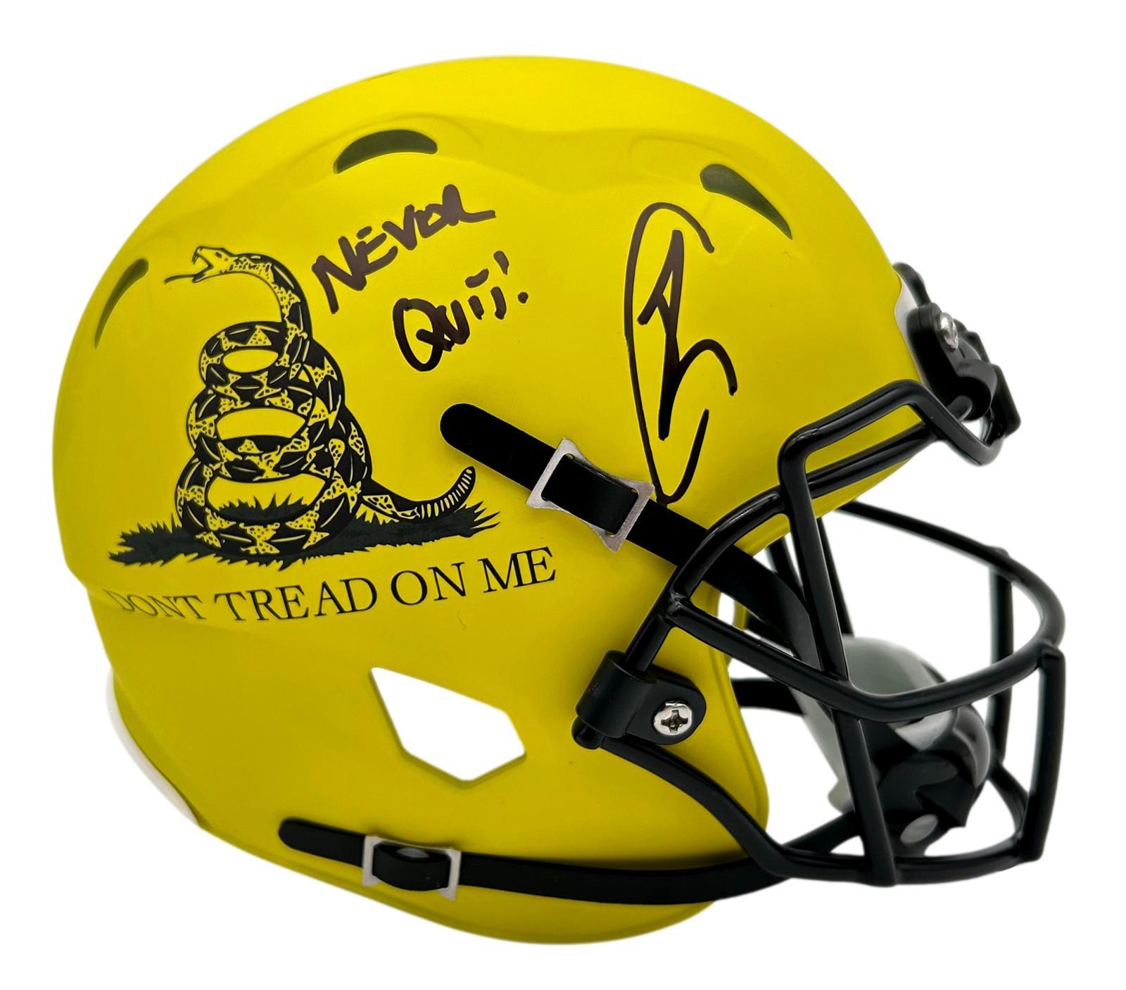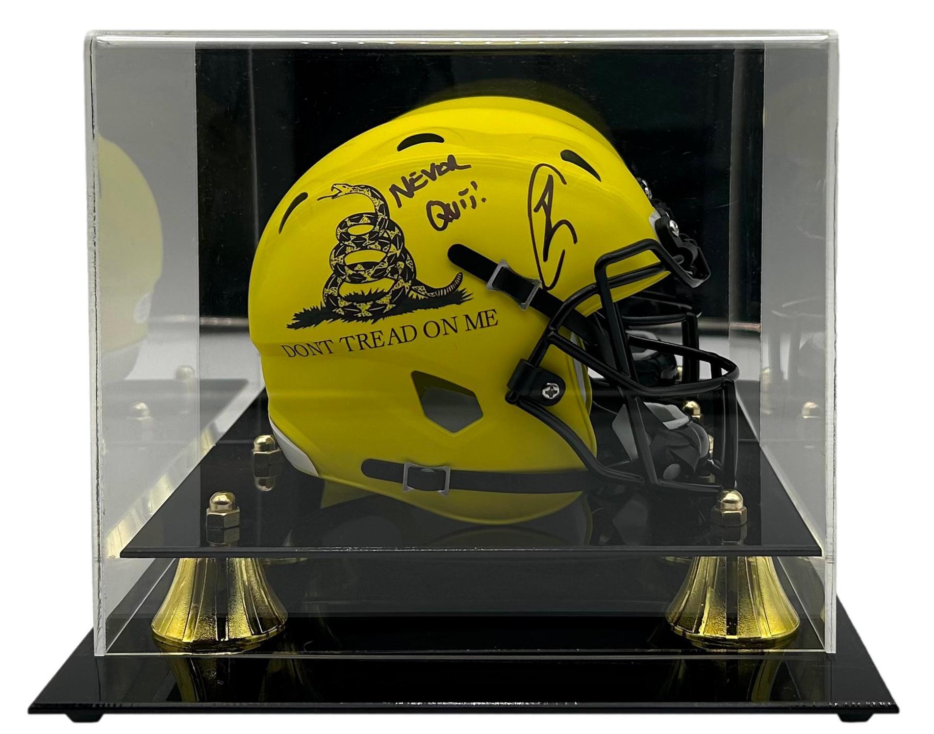 Robert O'Neill Signed "DONT TREAD ON ME" Mini Helmet Inscribed "Never Quit!" with Display Case (PSA)