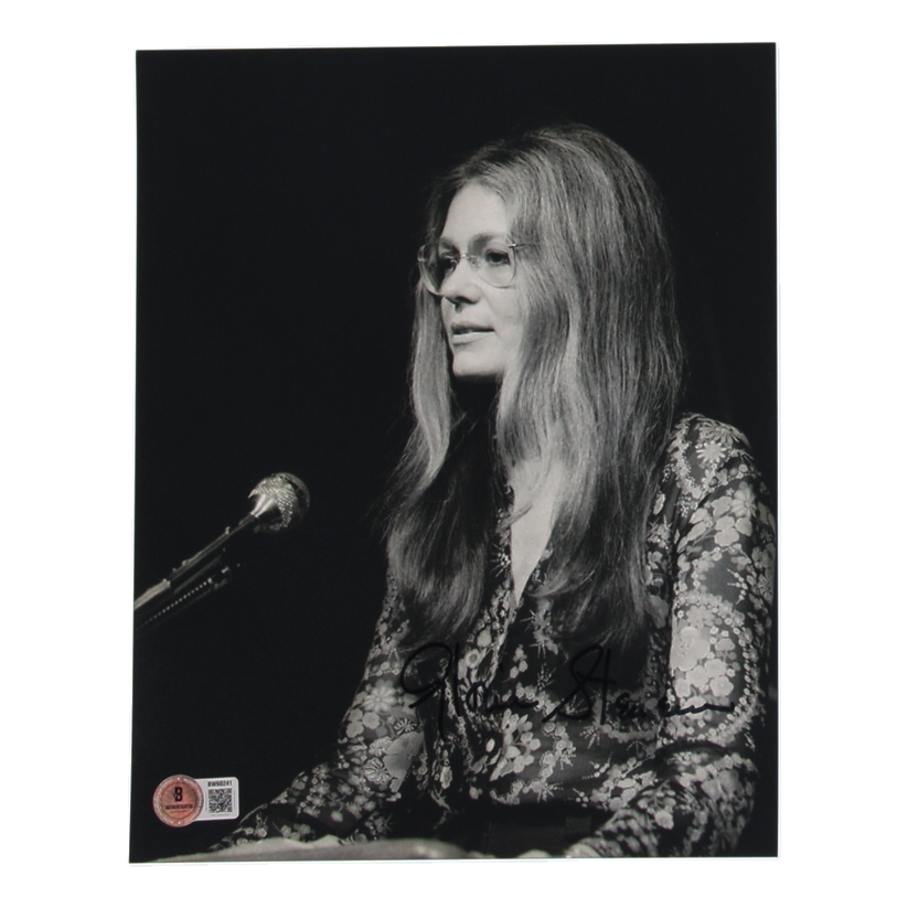 Photo measures approximately 8" x 10" in size and has been hand-signed by Gloria Steinem.