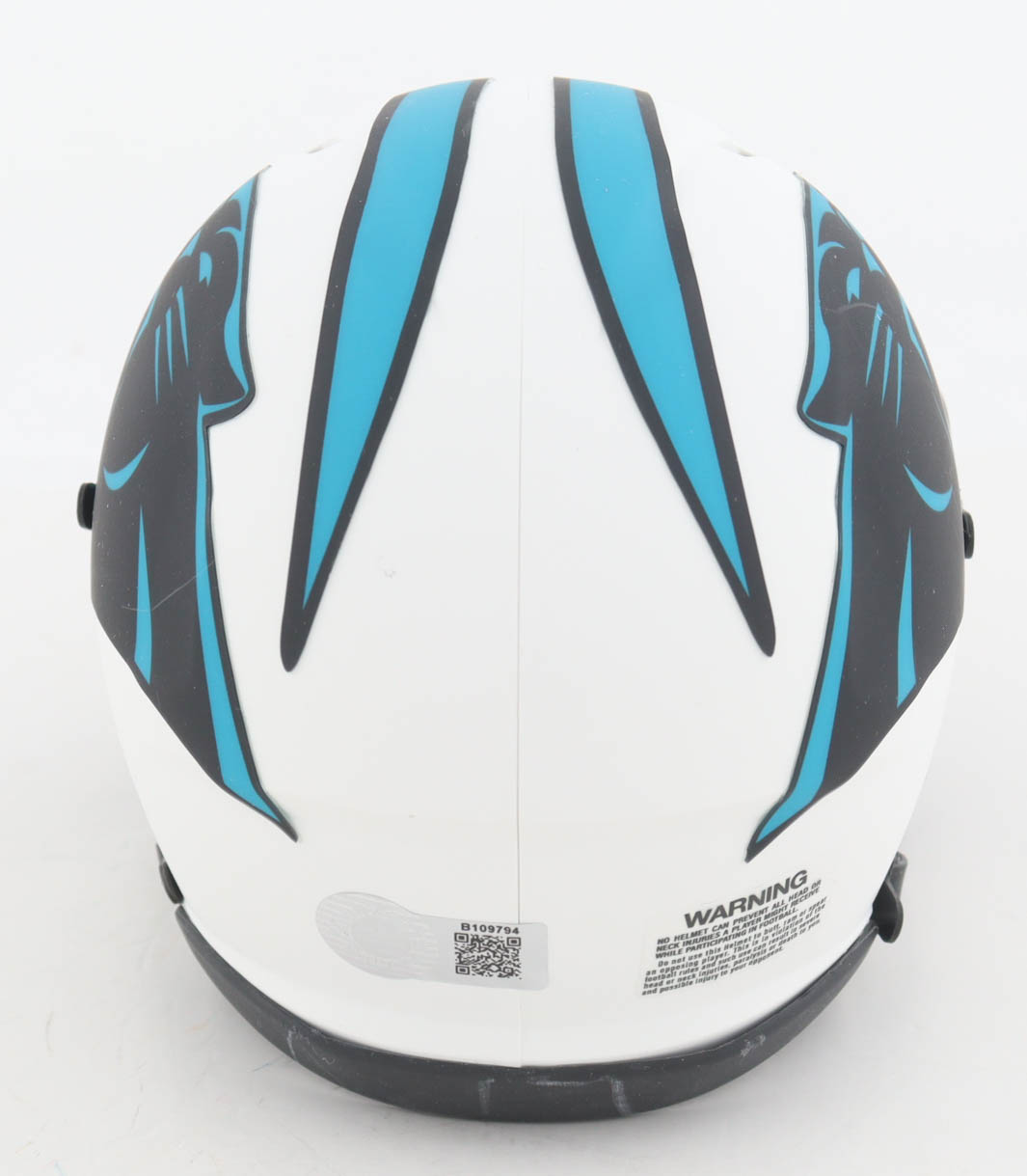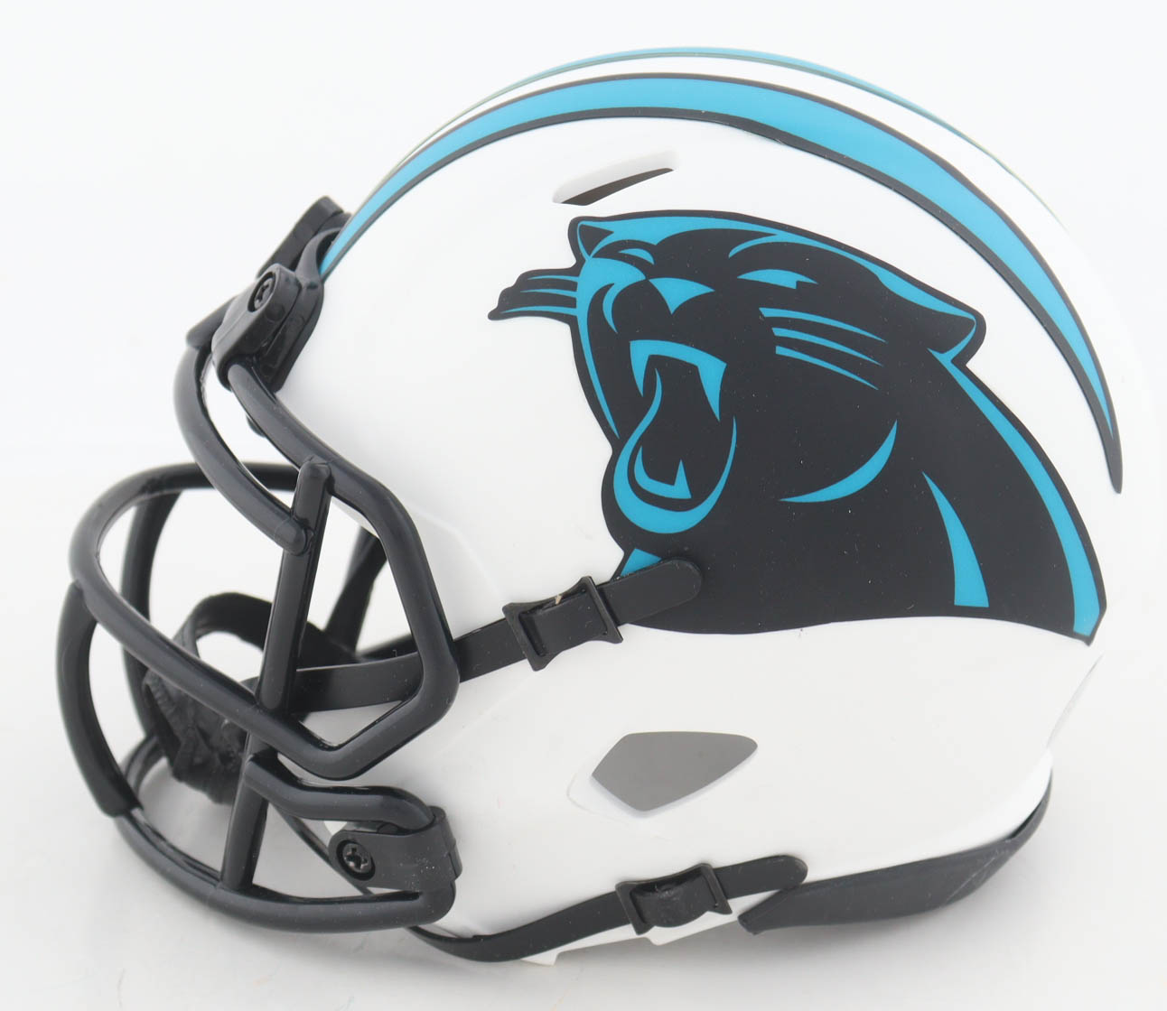 Riddell Carolina Panthers Lunar Eclipse Alternate Speed mini helmet. Hand-signed by Steve Beuerlein.