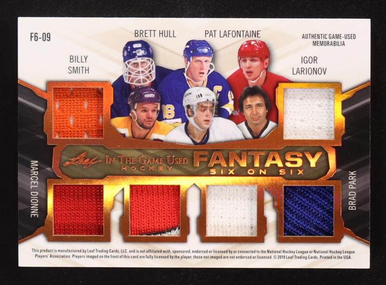 2019 Leaf ITG Used Fantasy Six On Six Memorabilia #FG-09 #4/25 Billy Smith / Brett Hull / Pat Lafontaine / Igor Larionov / Marcel Dionne / Brad Park / Mario Lemieux / Alexander Ovechkin / Dave Keon / Chris Pronger / Marc-Andre Fleury / Larry Murphy