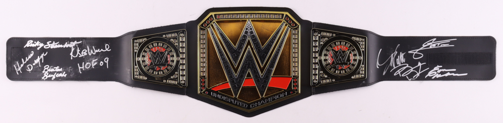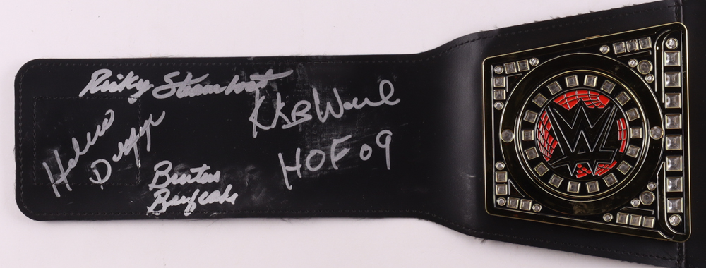 WWE Hall of Famers Replica World Championship Belt Signed By (8) with Ricky Steamboat, Brutus Beefcake, Greg Valentine, KoKo B. Ware (JSA)