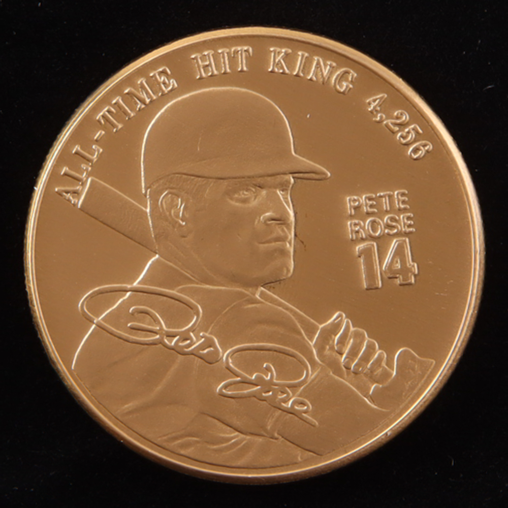 Pete Rose LE "All-Time Hit King" The Highland Mint Reds Solid Bronze Coin With Display Case