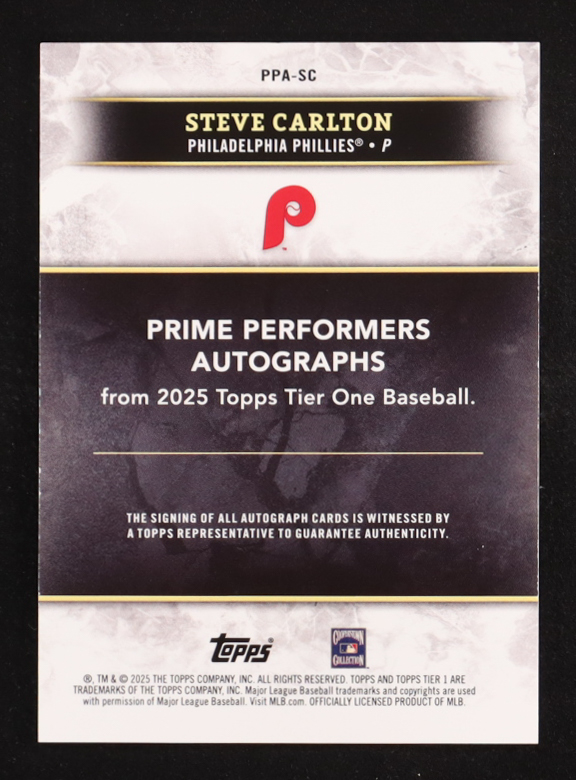 Steve Carlton 2025 Topps Tier One Prime Performers Autographs #PPA-SC #40/75