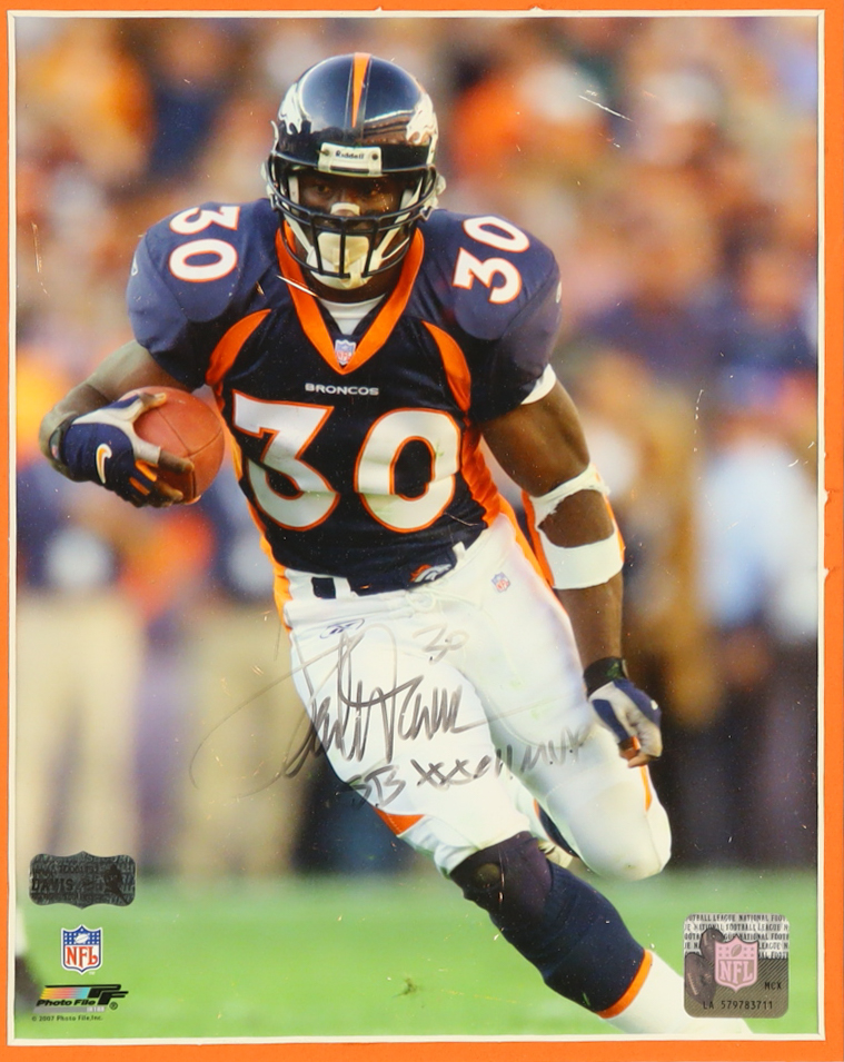 Custom frame measures 16” x 18” in size and features a photo that has been hand-signed and inscribed by Terrell Davis (Denver Broncos, HOF).