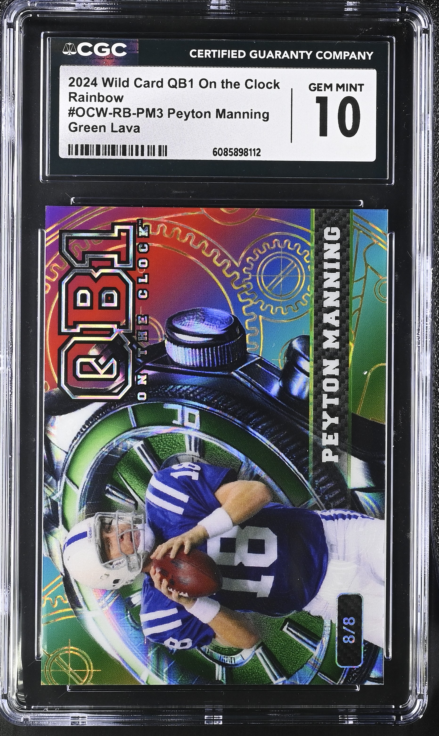 Peyton Manning 2024 Wild Card QB1 On The Clock Rainbow Green Lava #PM3 #8/8 (CGC 10)
