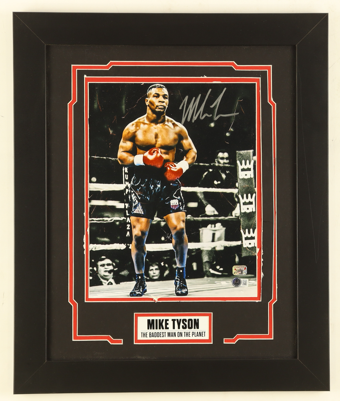 The autograph includes an official Beckett Authentication Services serially numbered hologram as well as an official Mike Tyson hologram from Fiterman Sports Group for authenticity purposes. The signing of this item was witnessed by Beckett.