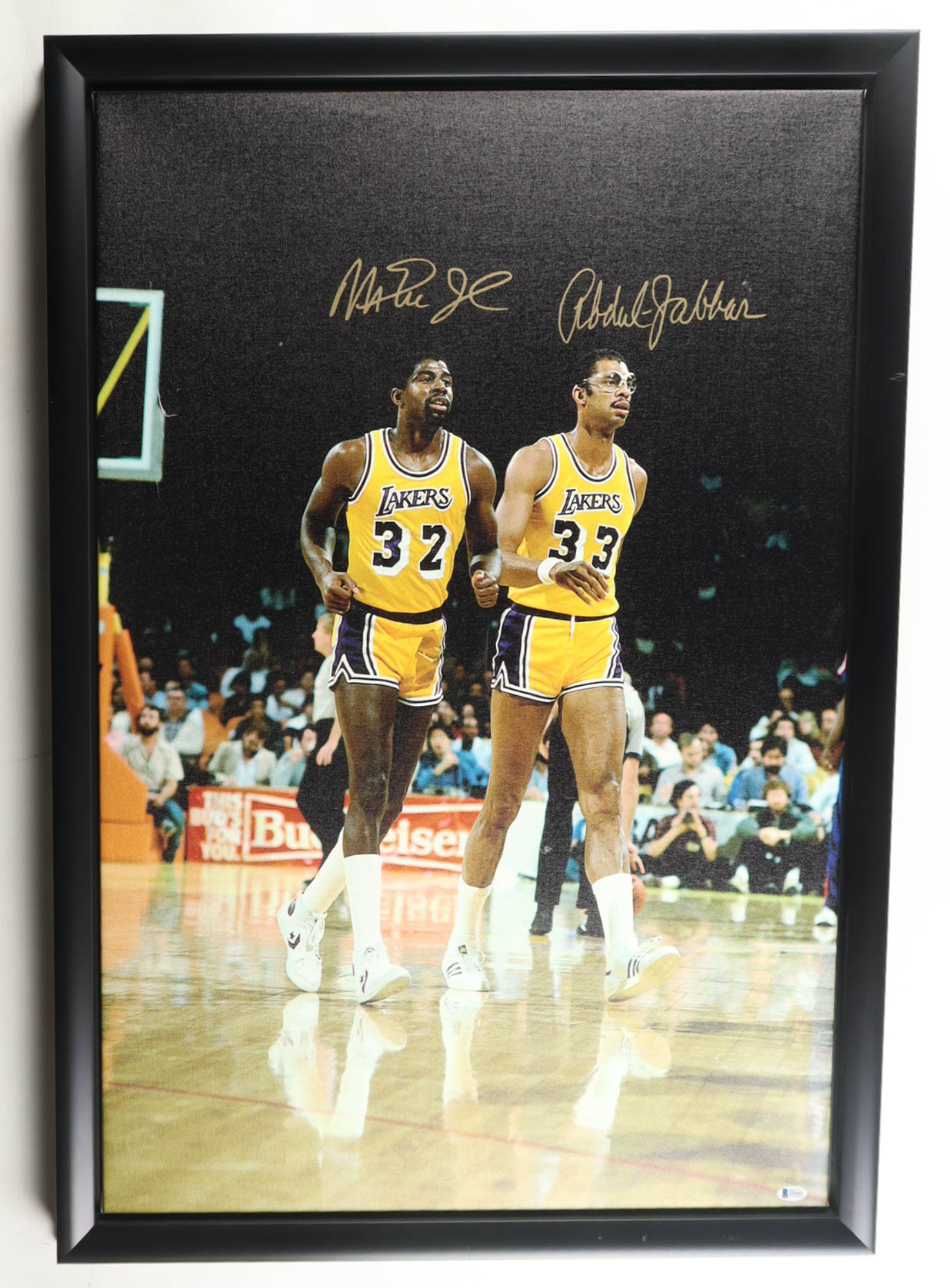 Magic Johnson & Kareem Abdul-Jabbar Signed Lakers Custom Framed Canvas Photo Display (Beckett)