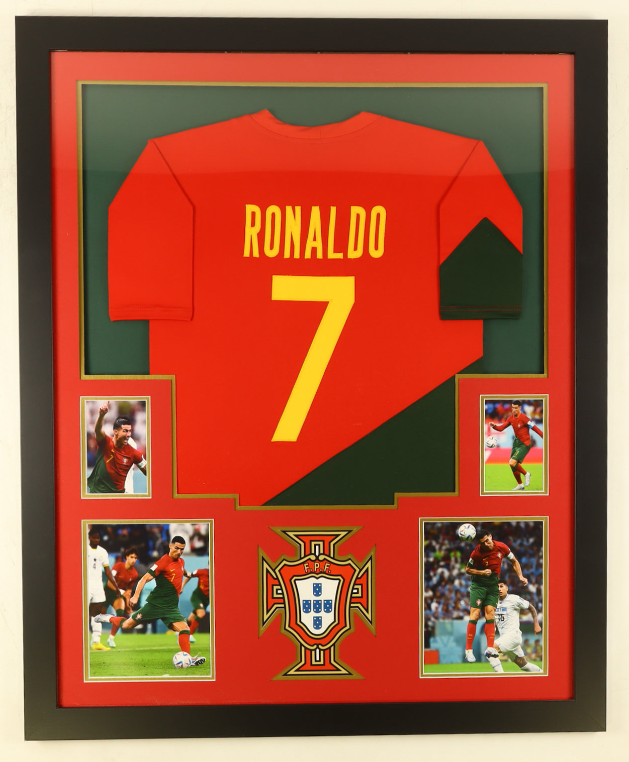 Custom frame measures 36" x 44" in size and features an unsigned jersey of Cristiano Ronaldo (Portugal National Team).