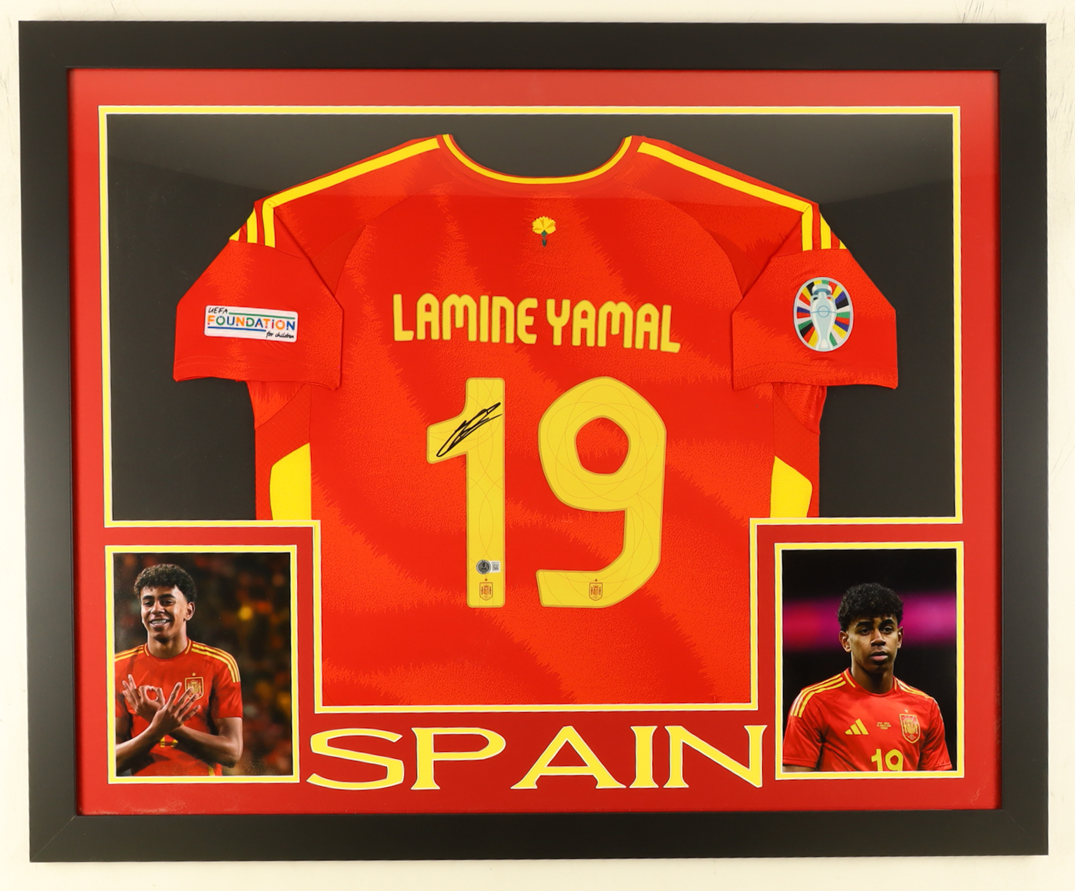 Custom frame measures 36" x 44" in size and features a custom jersey that has been hand-signed by Lamine Yamal (Spain National Football Team). Please refer to photos regarding the condition of the item.