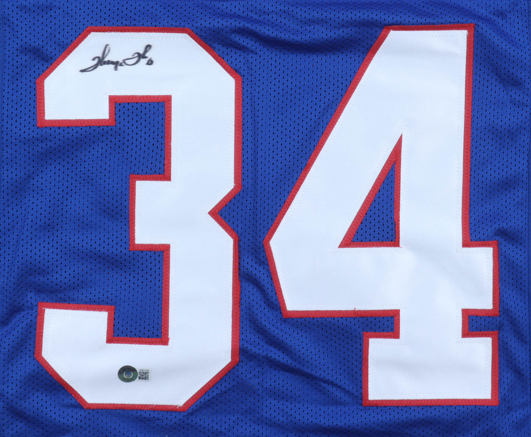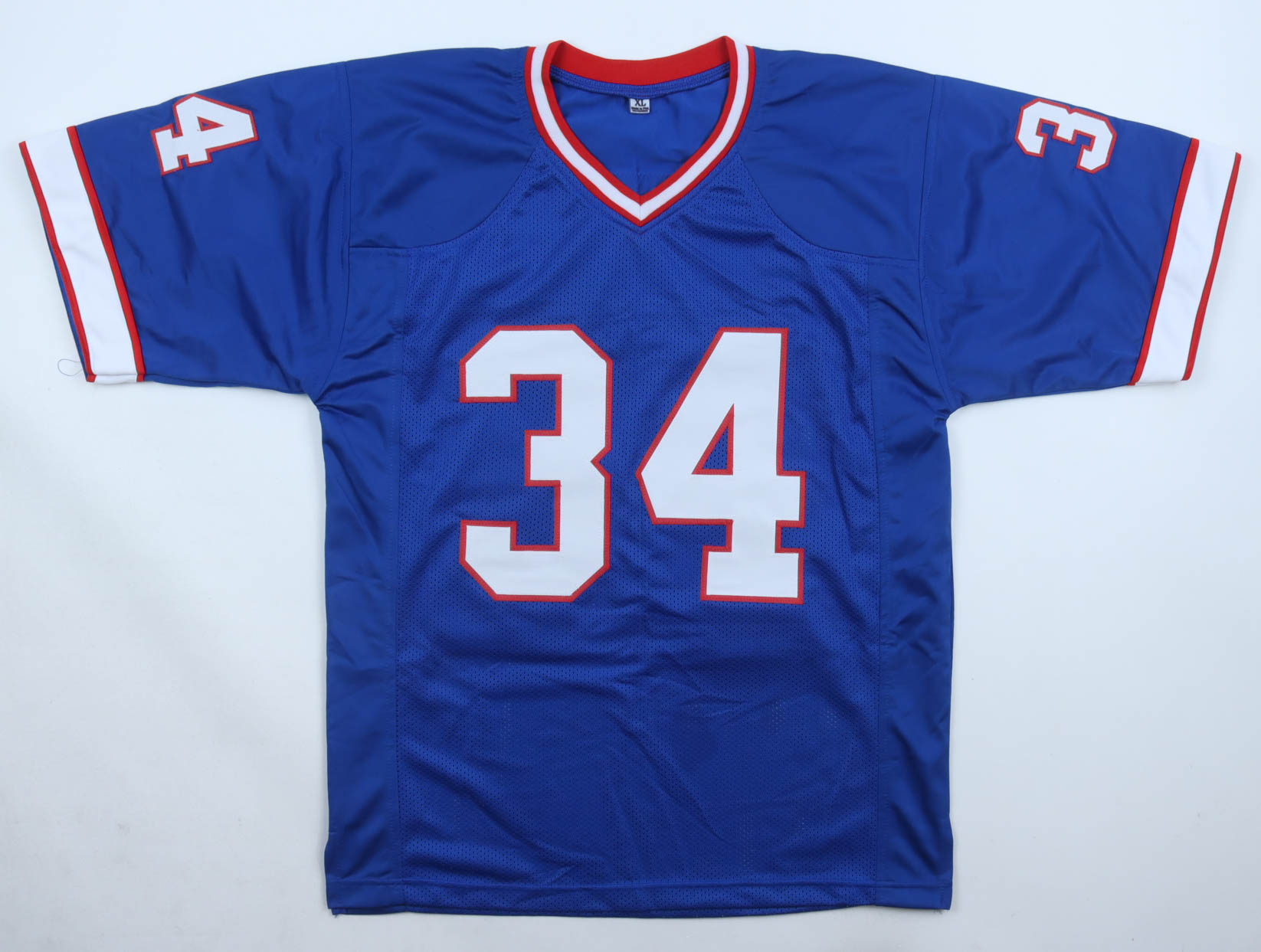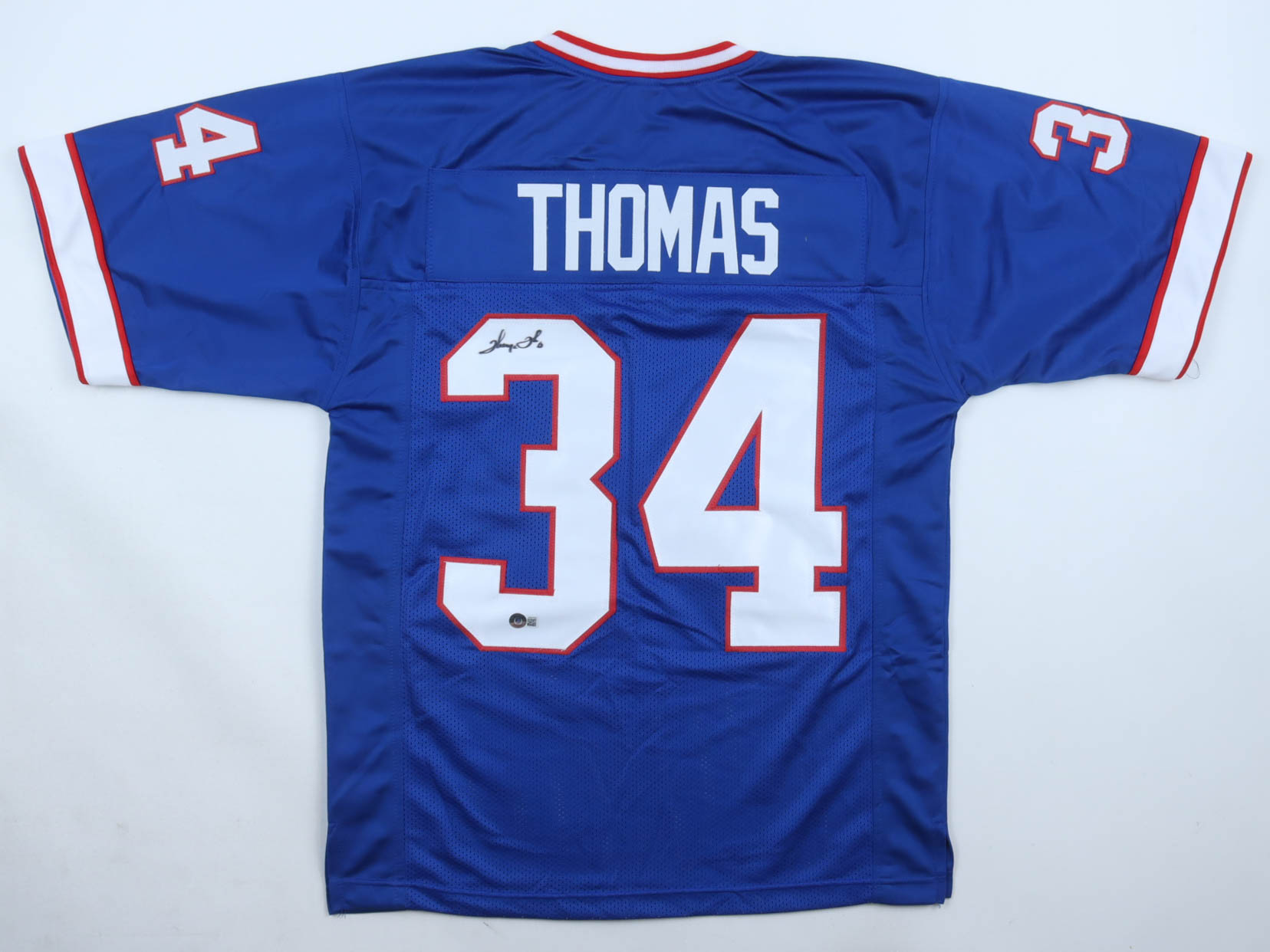 Custom jersey. Everything sewn on, size XL. Hand-signed by Thurman Thomas (HOF). Please note, there is staining on the front of the jersey