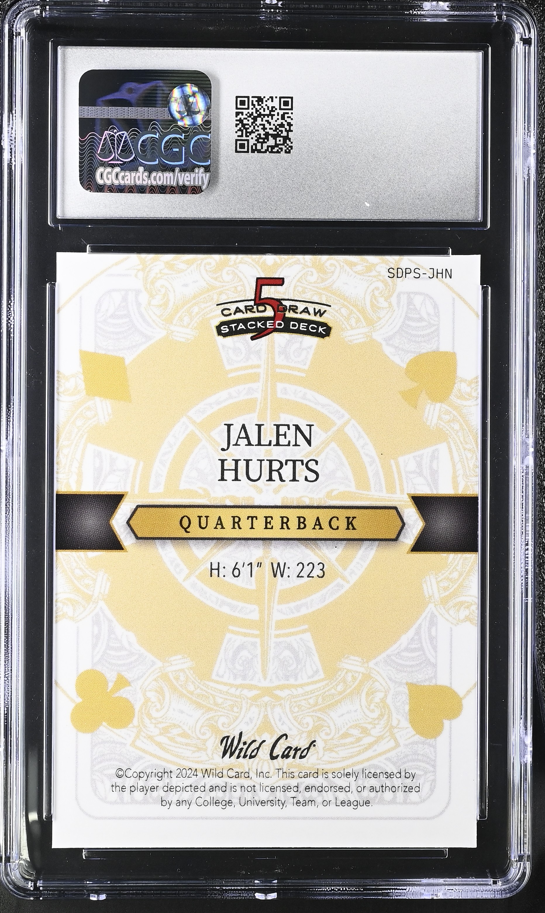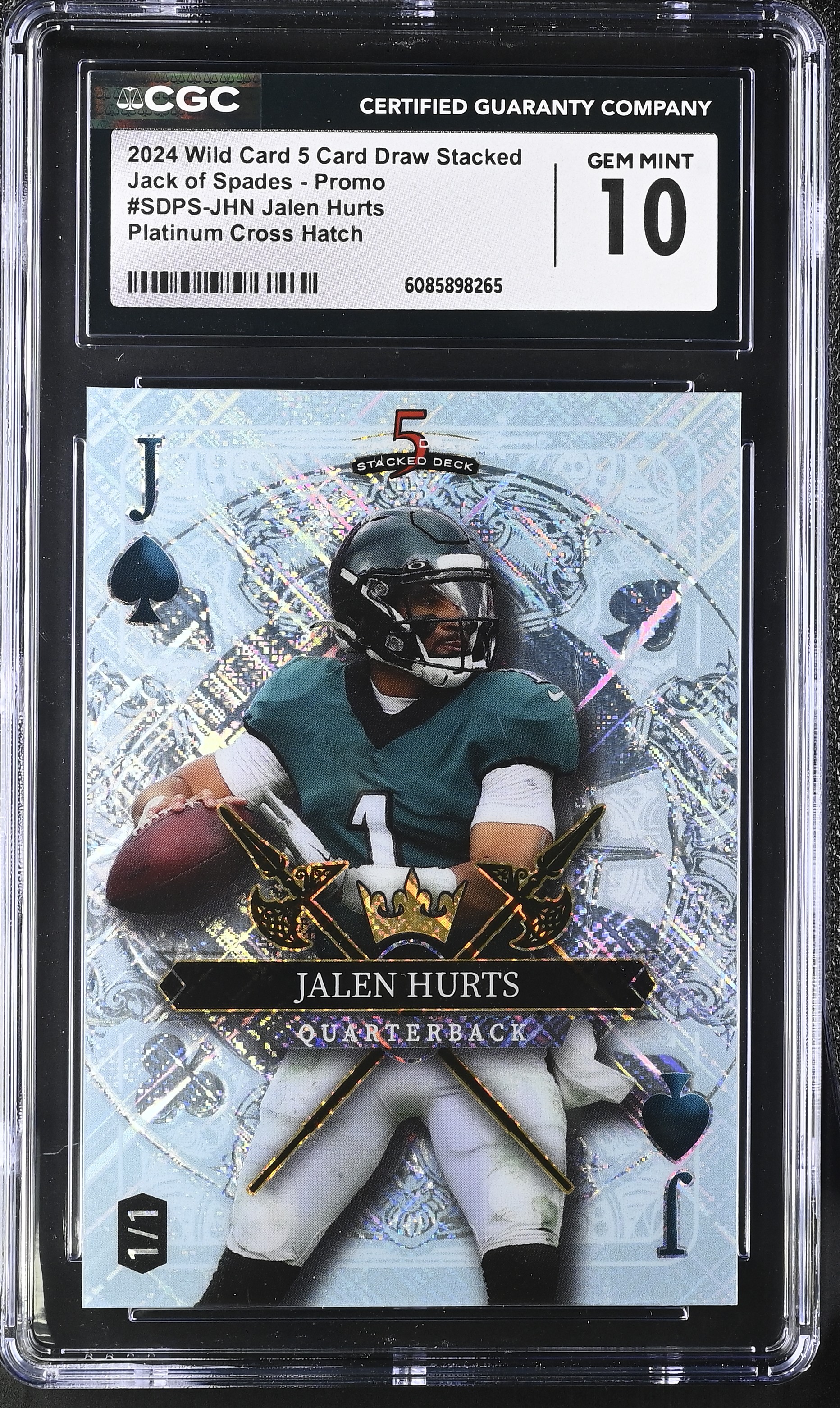 Jalen Hurts 2024 Wild Card 5 Card Draw Stacked Jack Of Spades - Promo Platinum Cross Hatch #JHN #1/1 (CGC 10)
