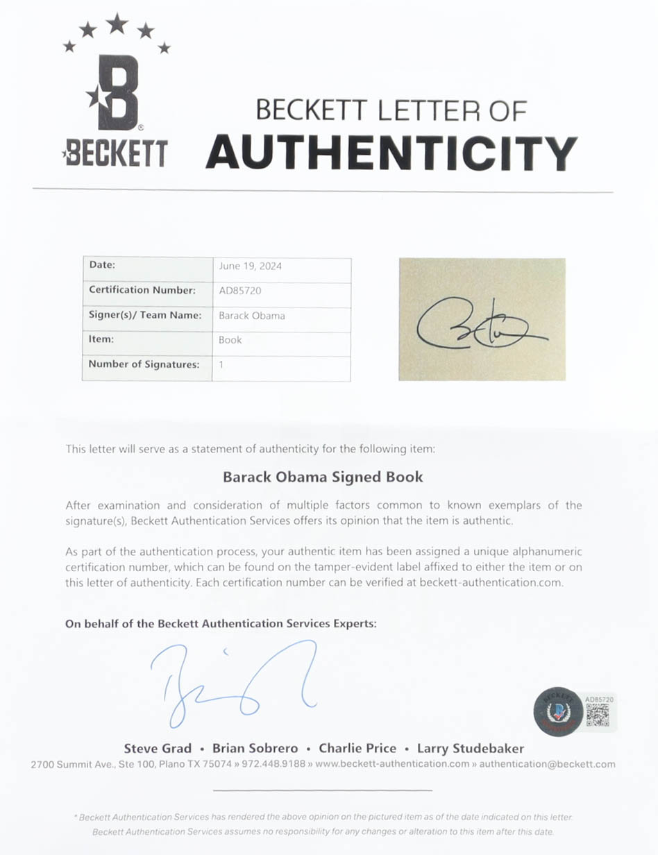 "A Promised Land" Hardcover Book has been hand-signed on the inside cover page by Barack Obama.