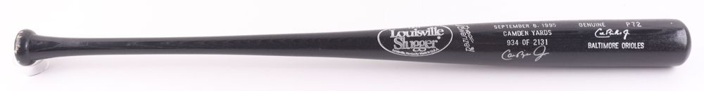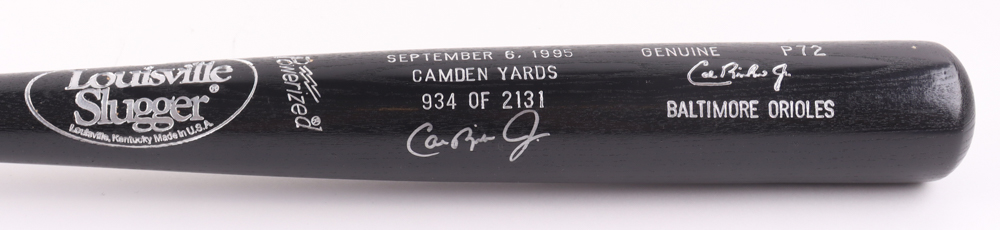 Louisville Slugger P72 Camden Yards commemorative model baseball bat hand-signed by Cal Ripken Jr. Limited Edition #934/2131. See photos for more details.