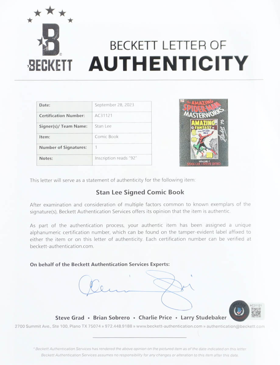 Softcover Book has been hand-signed and inscribed on the cover by Stan Lee (D. 2018).