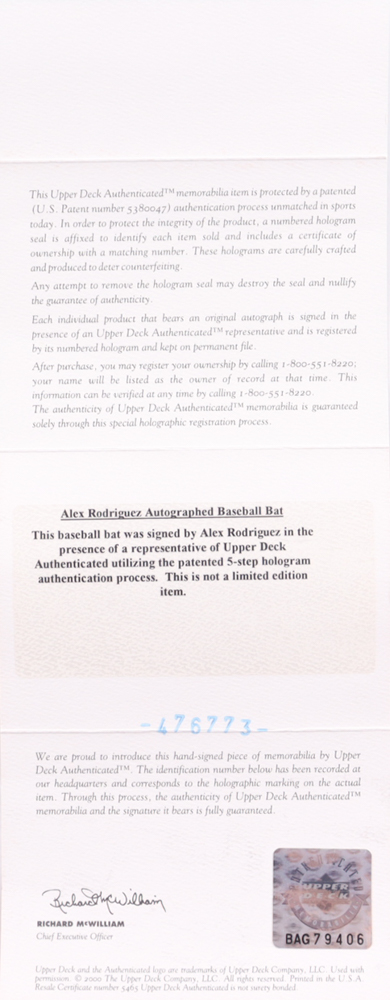 Alex Rodriguez Signed Louisville Slugger Baseball Bat (UDA)