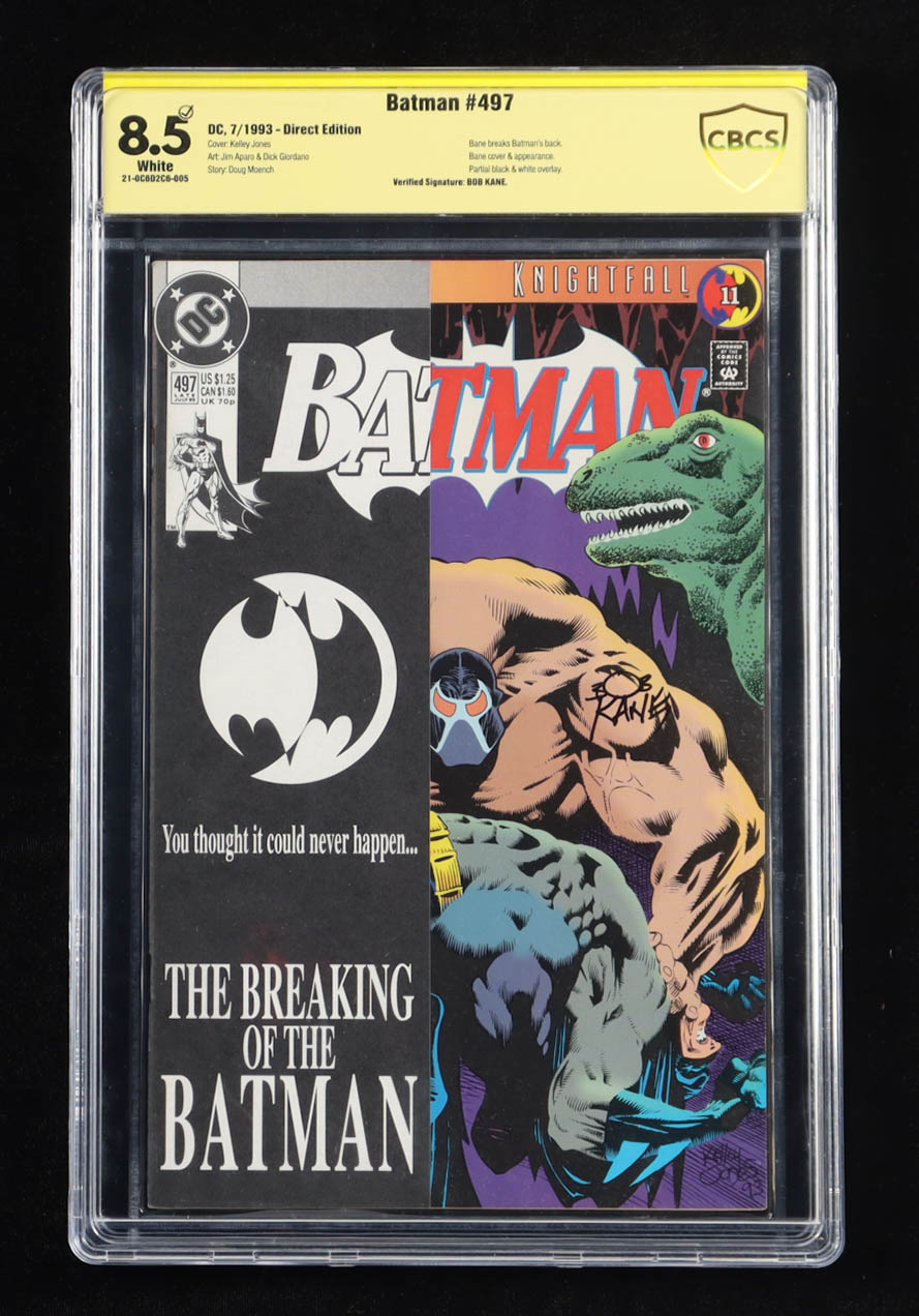 July 1993 "Batman" #497 DC Comic Book has been graded CBCS (8.5) and has been Bob Kane (D. 1998, Co-Creator, HOF). Please see photos for details regarding the condition of the comic.