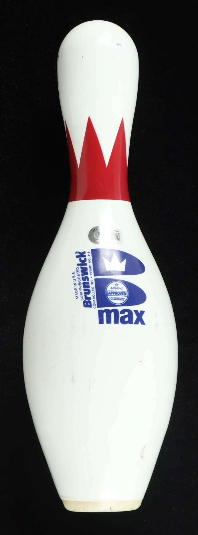 Bowling pin has been hand-signed and inscribed by Pete Weber (HOF). Please note, the pin is scuffed all over as well as chipped.
