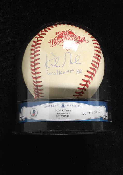 Kirk Gibson Signed 1988 World Series Baseball with Beckett Display Case Inscribed "Walk Off HR!" (BGS Encapsulated)
