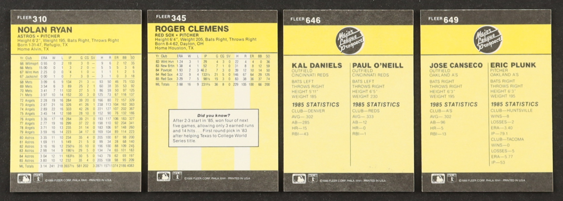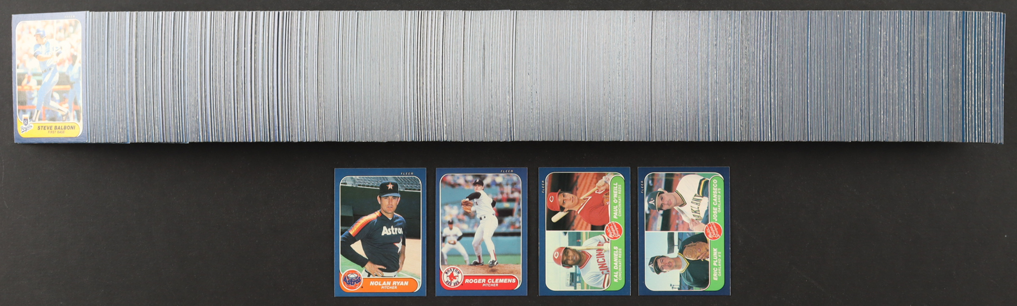 1986 Fleer Baseball Complete Set of (660) Cards with Jose Canseco #649 RC, Roger Clemens #345, Nolan Ryan #310, Paul O’Neill #646 RC