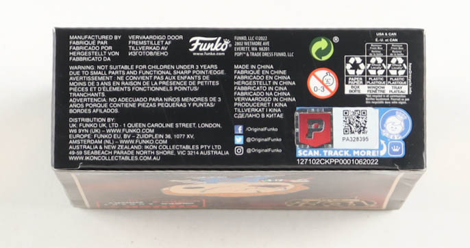 Funko Pop! pin measures approximately 4" tall and has been hand-signed and inscribed on the packaging by Alex Vincent.