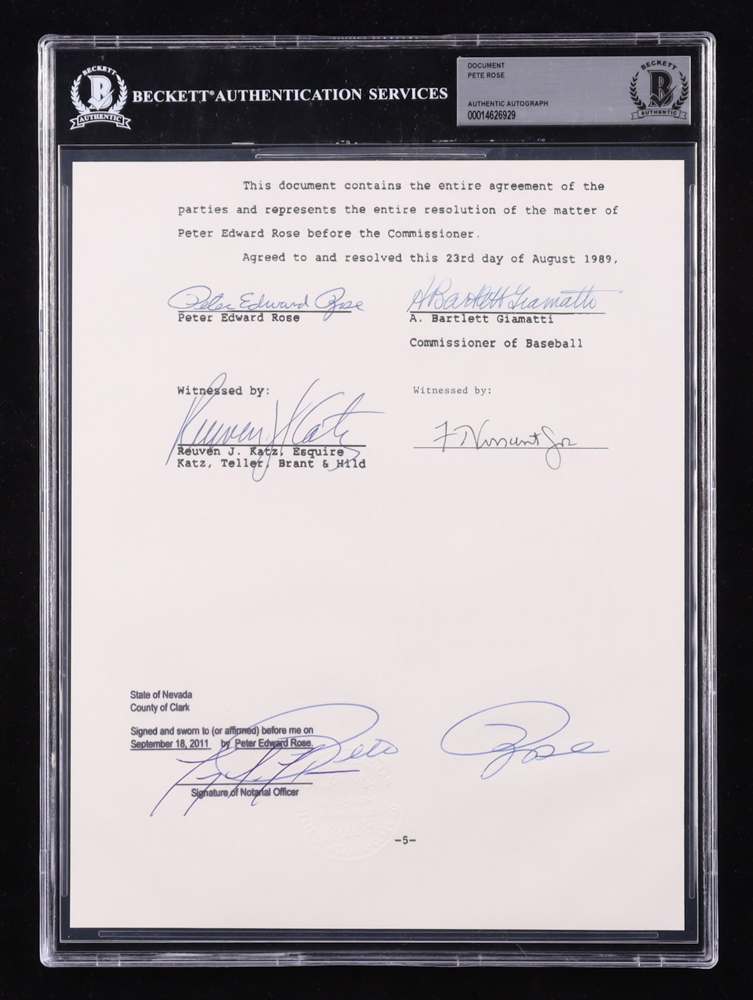 Pete Rose Signed "Banned from Baseball" Document (BAS)