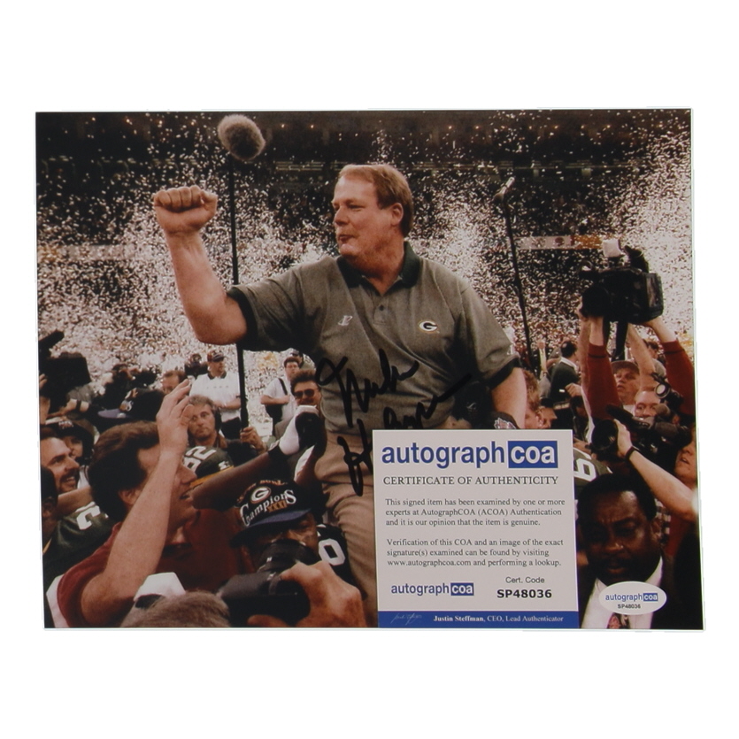 Photo measures 8" x 10" in size and has been hand-signed by Mike Holmgren (Green Bay Packers).