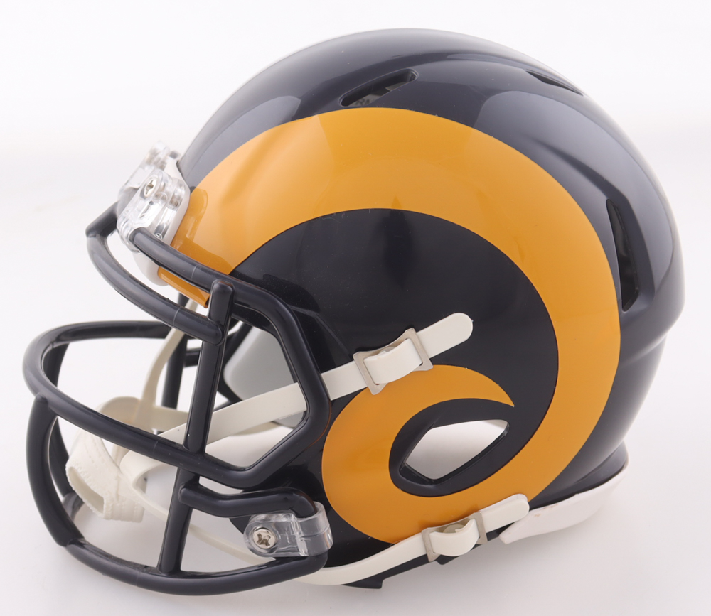Riddell St. Louis Rams Speed Mini Helmet. Hand-signed by Isaac Bruce (HOF).