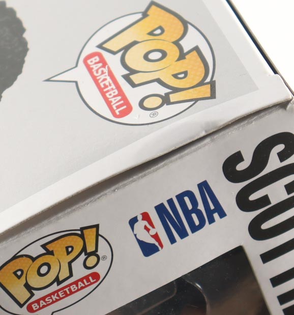 Vinyl figure measures approximately 4" tall and has been hand-signed on the packaging by Scottie Barnes. Please note the top of the packaging is dented and window has been swapped.