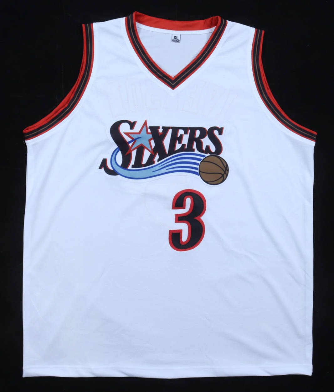 Custom jersey with everything sewn on, size XL. Hand-signed by Allen Iverson (HOF).