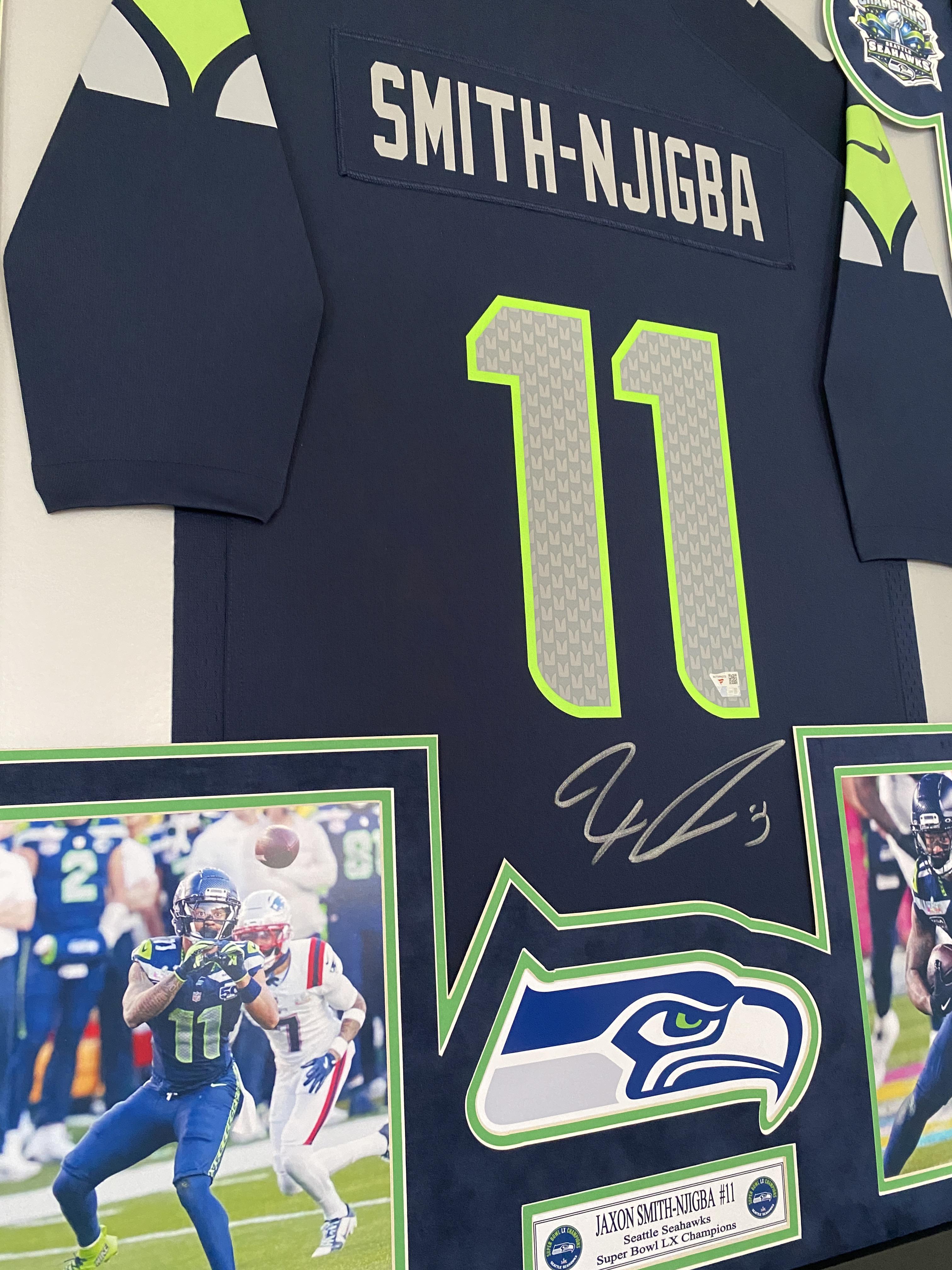 Jaxon Smith-Njigba Signed Seahawks Custom Framed Jersey Display with LED Lights (Fanatics)