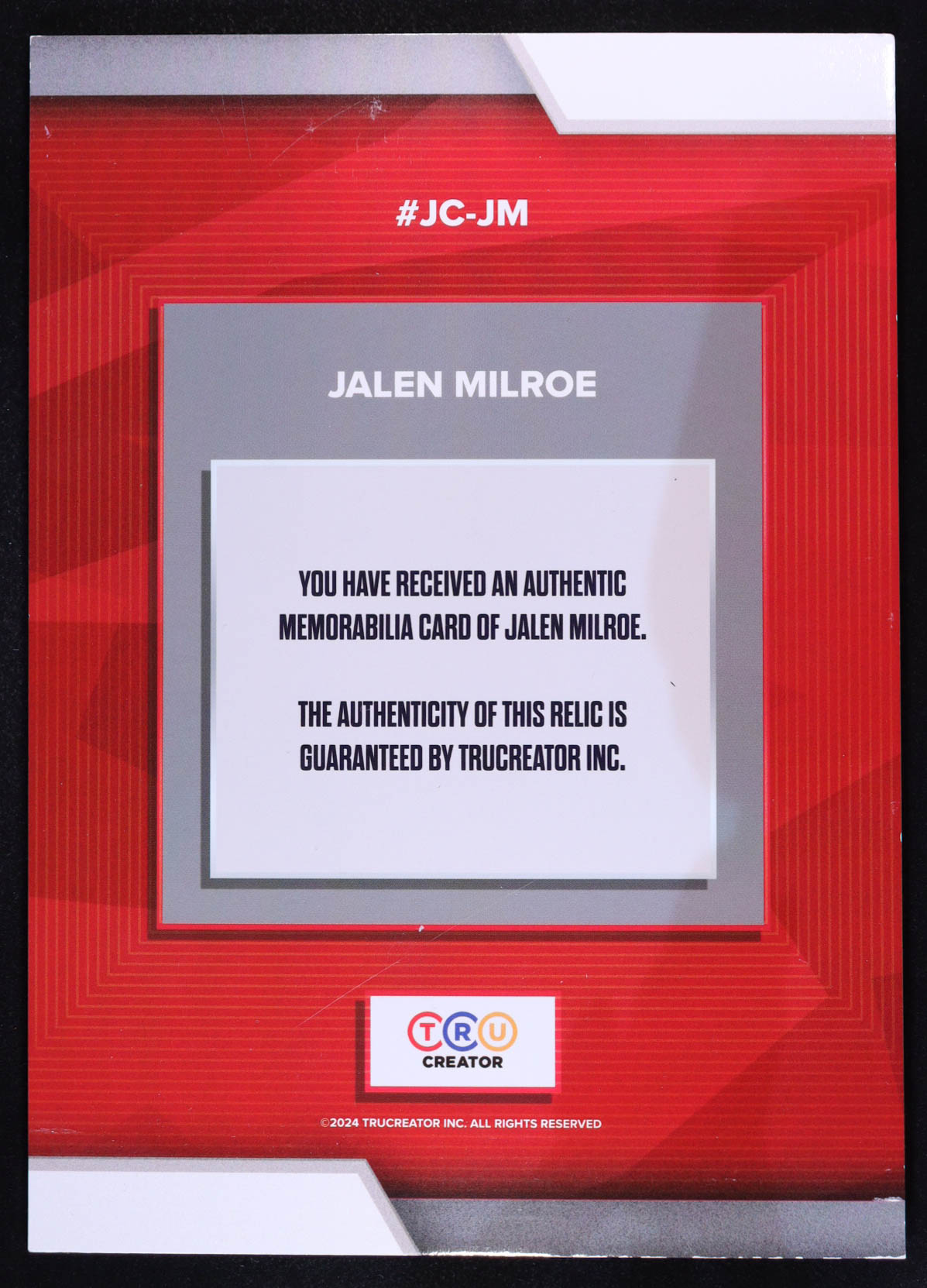 Jalen Milroe 2024 TruSport Jumbo Trucreator Cracked Ice #JC-JM JSY RC
