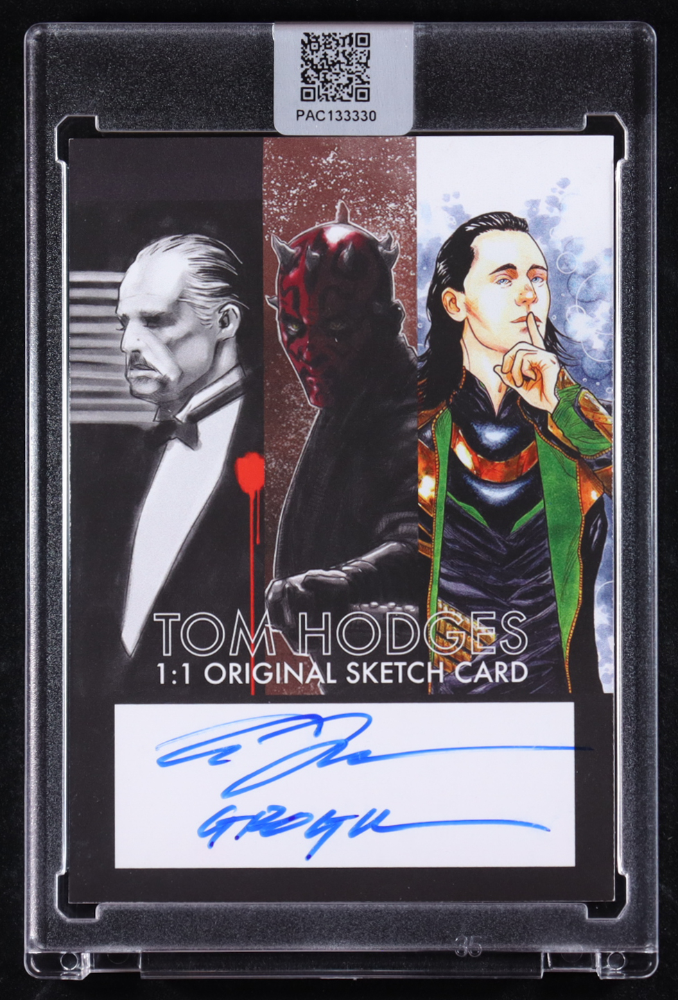This original sketch card includes original art by renowned comic book artist, Tom Hodges. Also includes a character name inscription on the back by the artist.