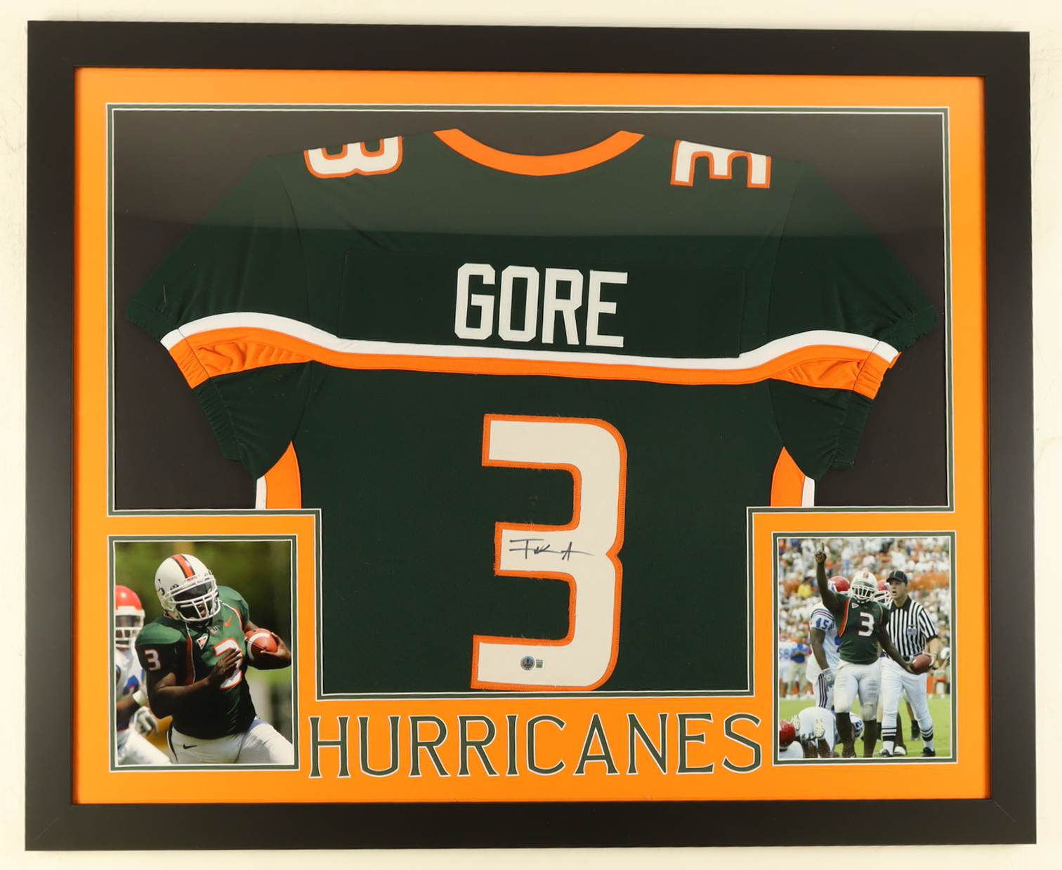 Custom frame measures approximately 35" x 43" in size and features a jersey hand-signed by Frank Gore.