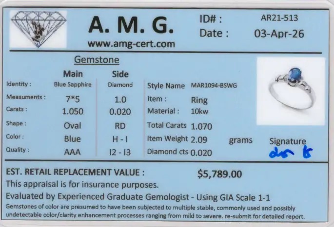 The item includes certification from AMG.