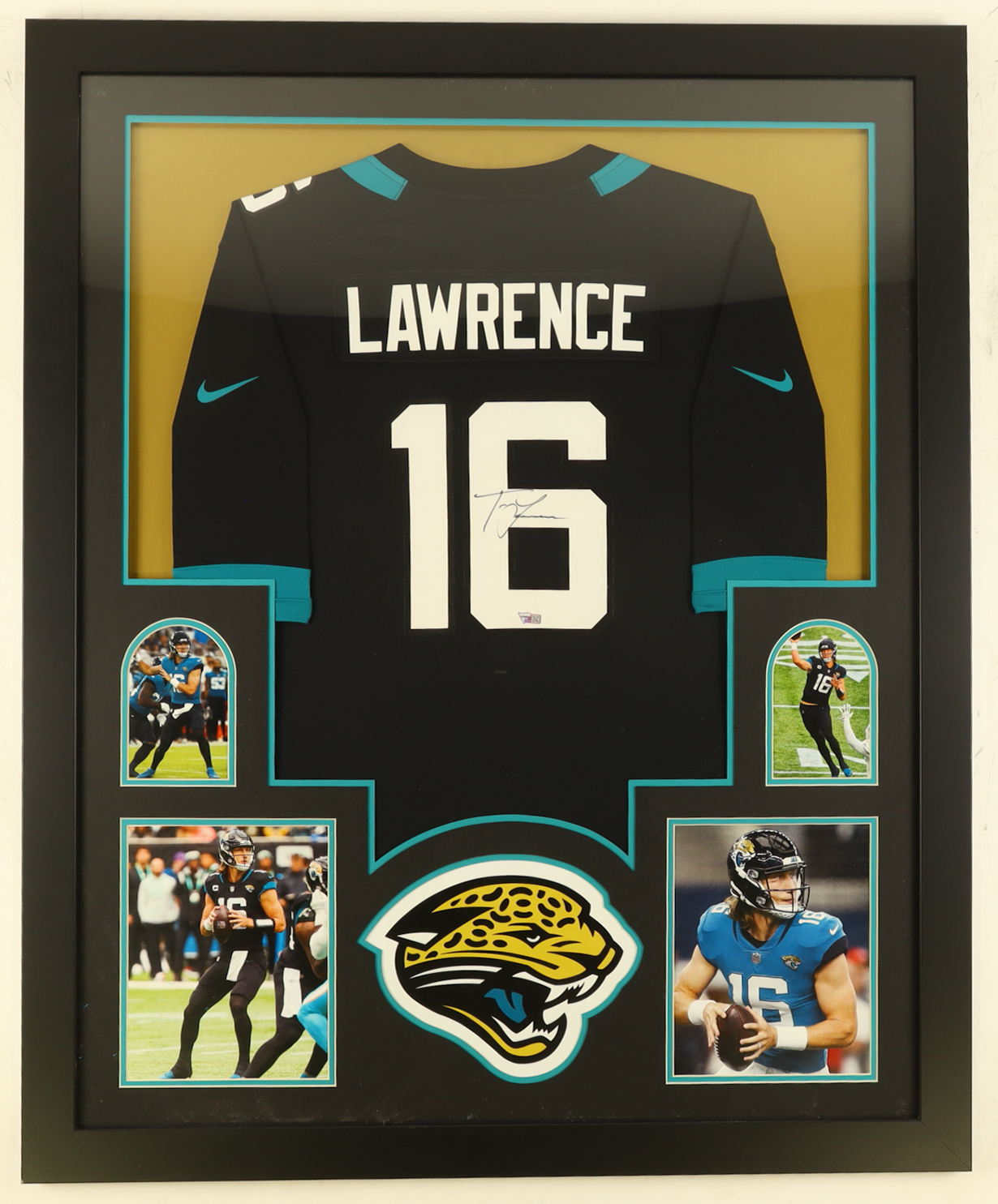 Custom framed display measures approximately 36" x 44" in size and features an authentic Nike jersey that has been hand-signed by Trevor Lawrence (Jacksonville Jaguars).