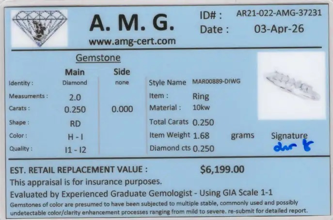 0.25 CTW Natural Diamonds 10K WG Designer Ring | Estimated Retail Value: $6,199 (AMG)