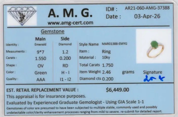 1.75 CTW Natural Diamonds & Emeralds 10K YG Designer Ring | Estimated Retail Value: $6,449 (AMG)