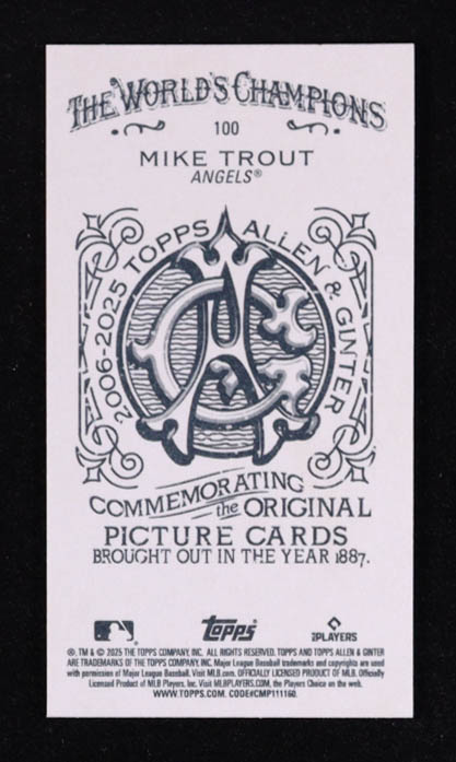 Mike Trout 2025 Topps Allen and Ginter Mini A and G Back #100