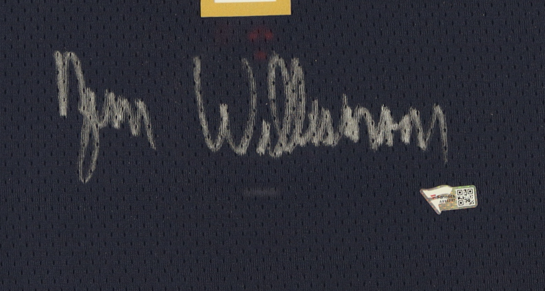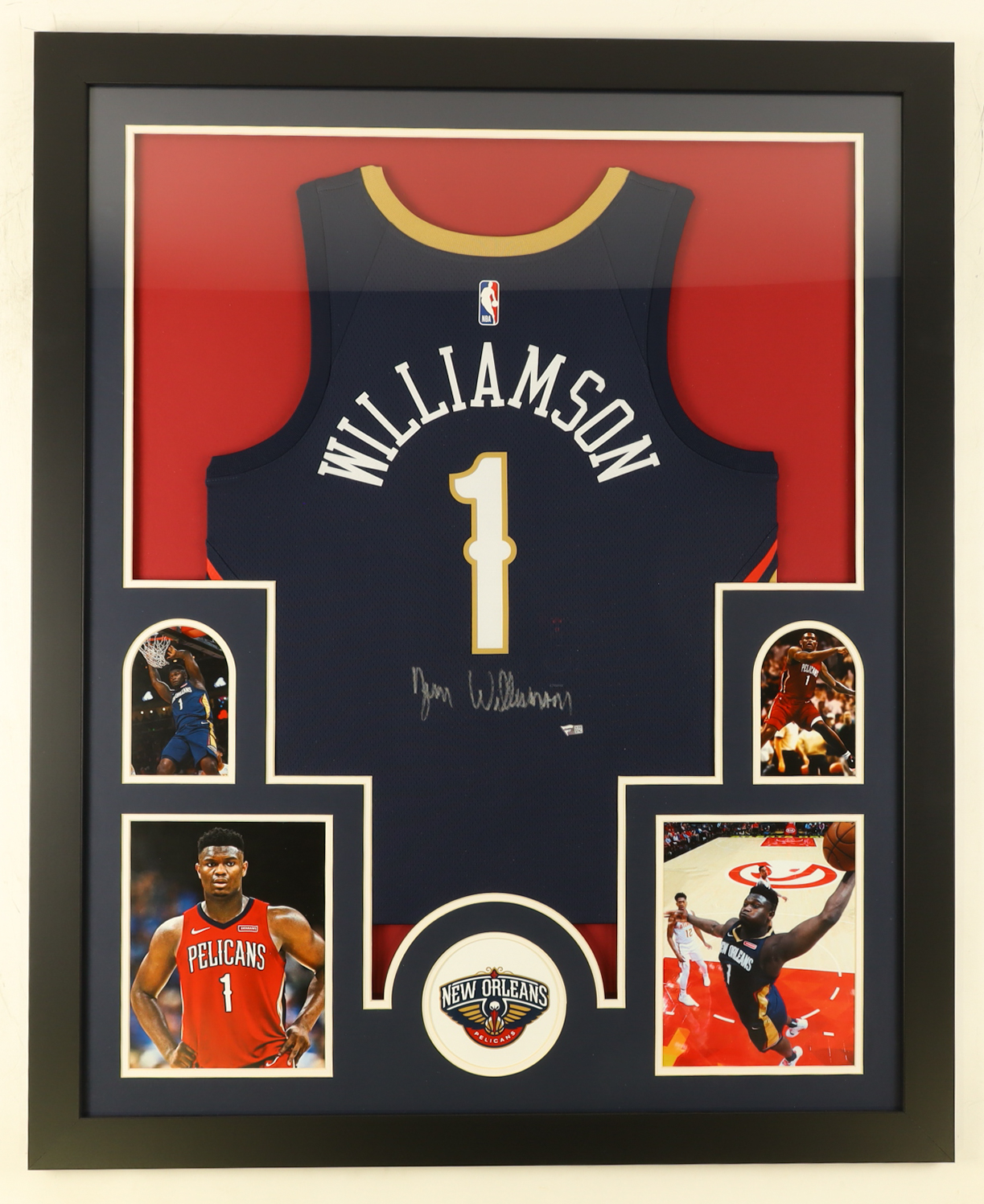 Custom frame measures 36" x 44" in size and features a Nike Swingman jersey that has been hand-signed by Zion Williamson.